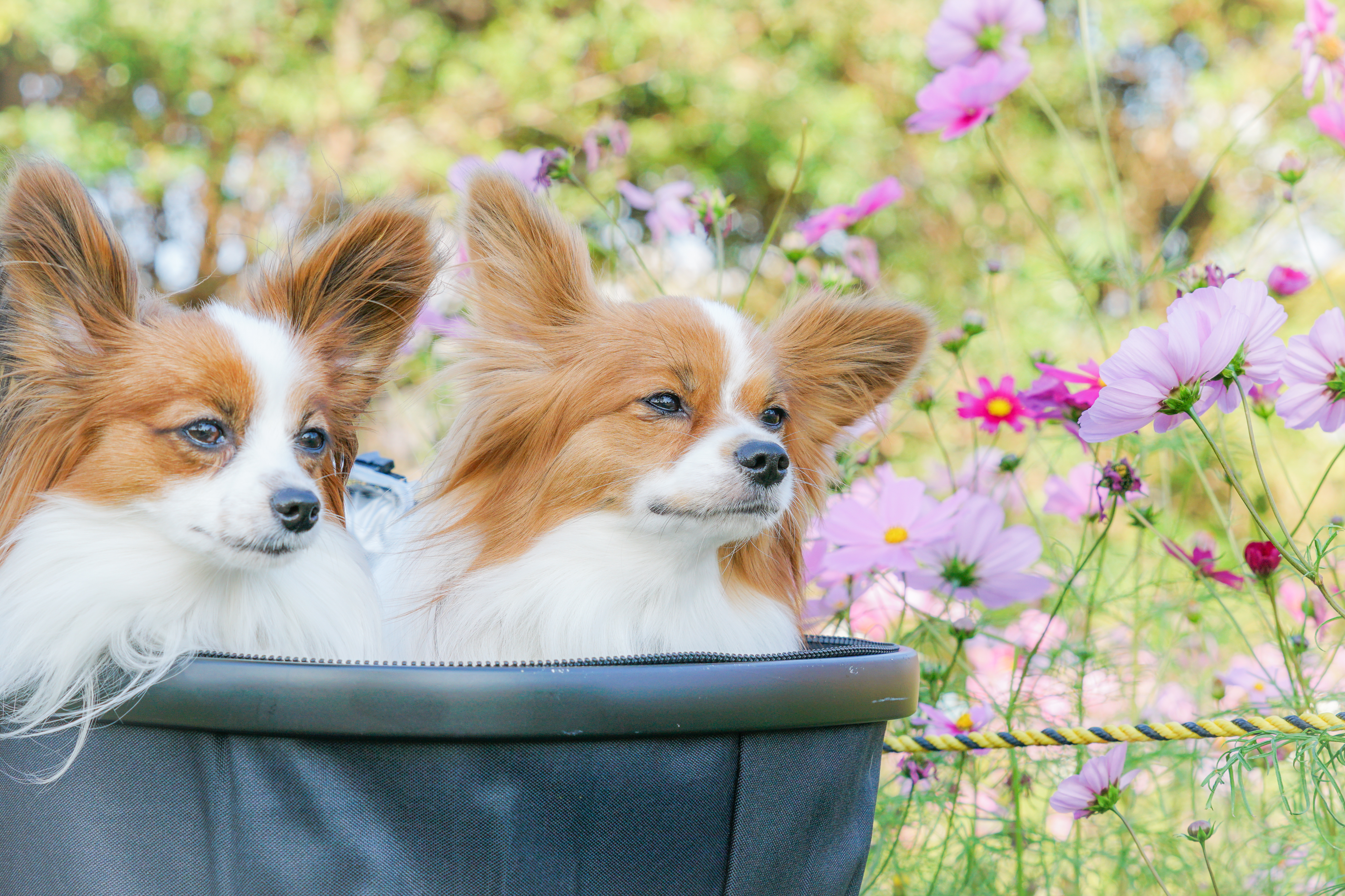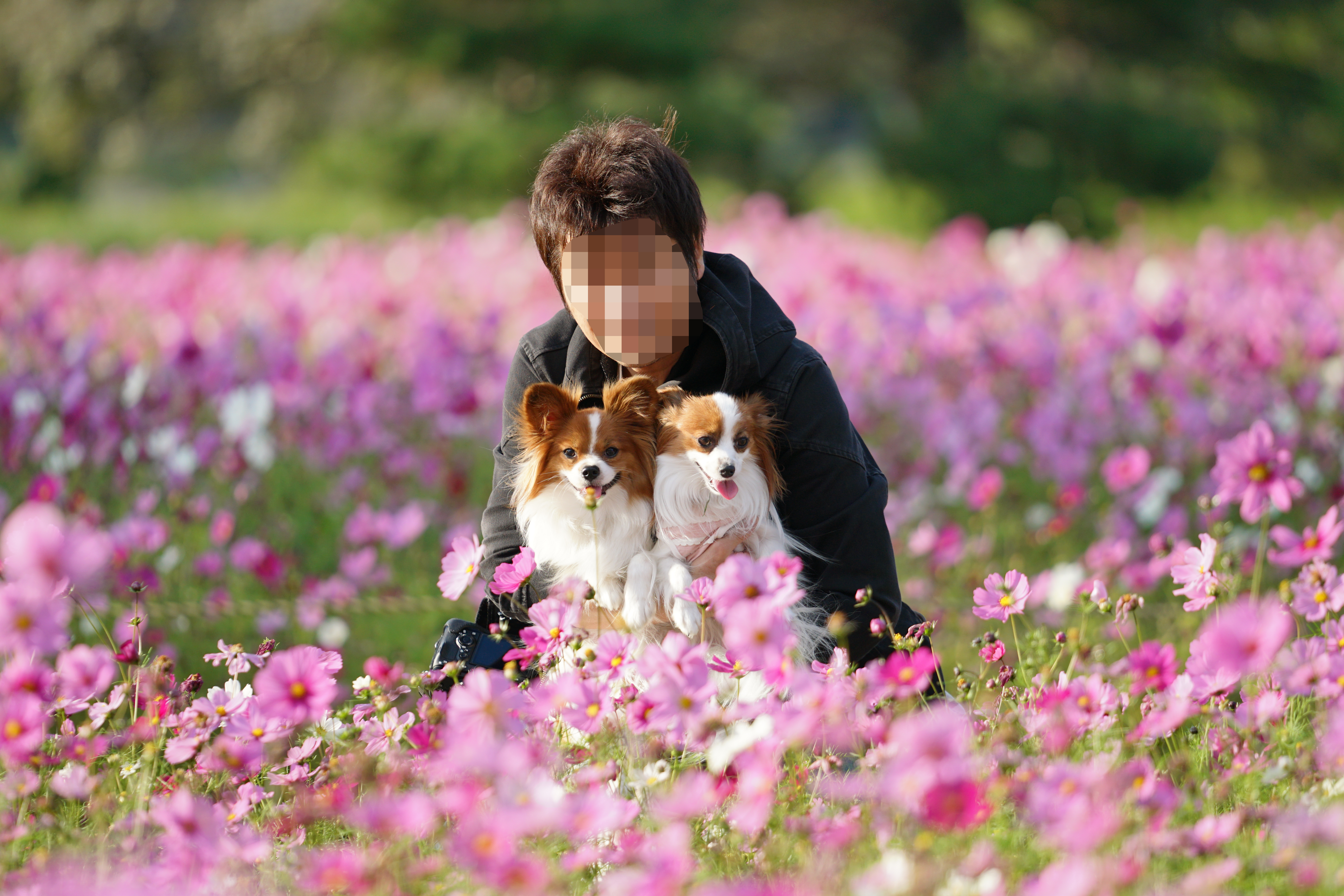 わんこたちとコスモスをいかに綺麗に撮るか(F値や構図など)