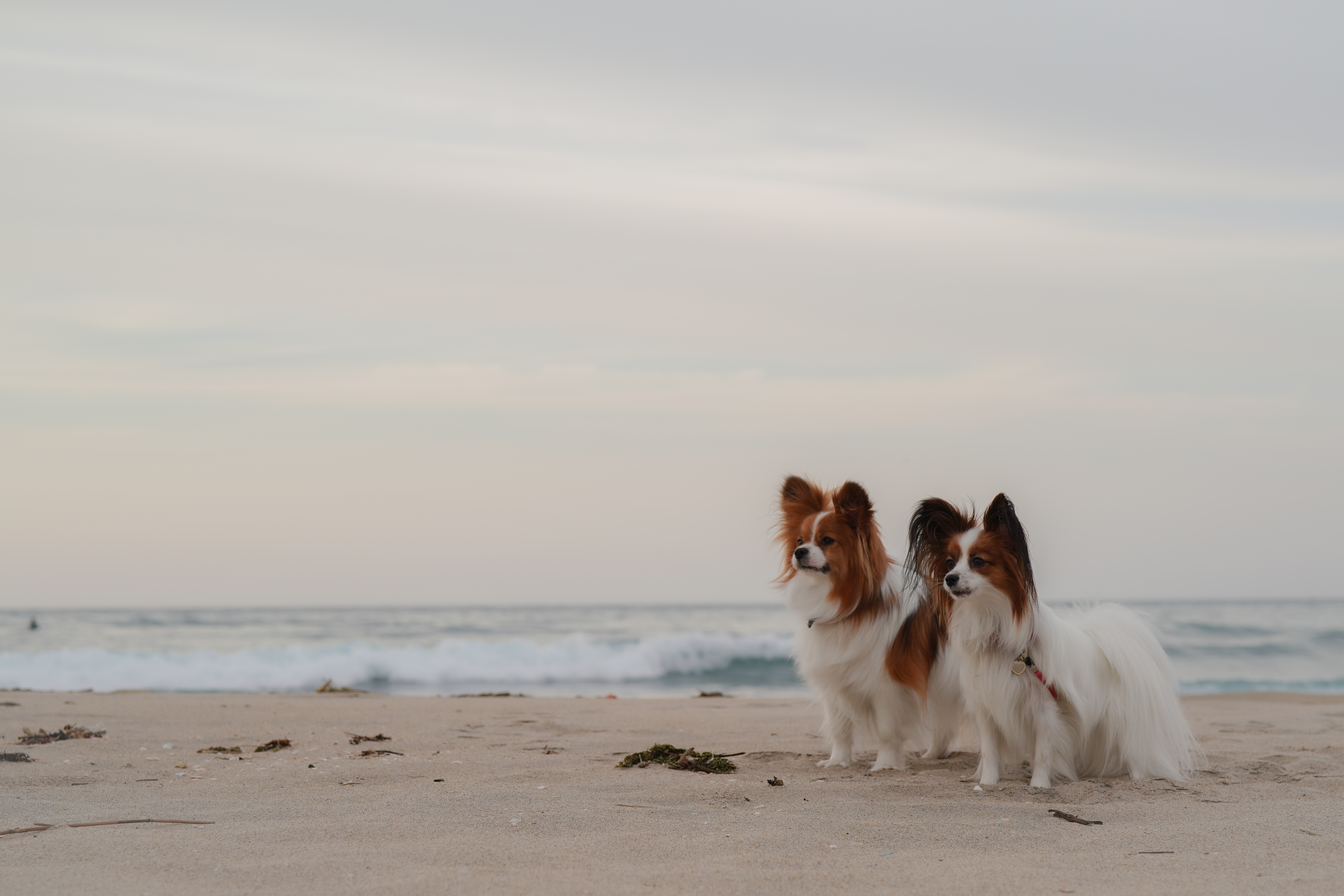 構図(わんこと海の距離、アングルなど)